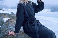 Kenno-kylpytakki on saunan ja suihkun jälkeisiin hetkiin suunniteltu, mukavan lokoisa kylpytakki chambray-kanttauksilla ja -vyöllä. Kenno-kankaalle ominaista on luonnollinen pehmeys ja eloisa tekstuuri.
