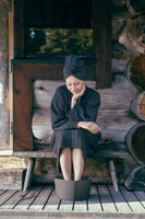 Noudata pesuohjeita ja vältä rumpukuivausta. Muotoile kylpytakki kosteana pesun jälkeen. Oikein hoidettuna kangas säilyttää pehmeytensä ja tuntumansa pitkään.