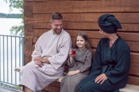 Kenno-kylpytakki on saunan ja suihkun jälkeisiin hetkiin suunniteltu, mukavan lokoisa kylpytakki chambray-kanttauksilla ja -vyöllä. Kenno-kankaalle ominaista on luonnollinen pehmeys ja eloisa tekstuuri.