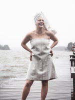 Pyyhkeet kuuluvat Vappu Saunassa -mallistoon ja ovat valmistettu tehtaalla Jokipiissä, kuten kaikki Jokipiin Pellavan pellavatuotteet. Saat samoissa maanläheisissä sävyissä sekä käsipyyhkeet että kylpypyyhkeet.