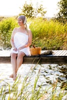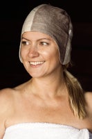 Tällä näppärällä tarranauhalla säädettävällä saunahatulla suojaat hiuksia ja päänahkaa saunan kuumuudelta. Kaunis maanläheinen sävy sopii moneen makuun. Materiaali pellava/puuvillaa (60/40 %). Yksi koko, sopii miehille ja naisille.