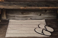 Tätä tyylikästä kylpymattoa voit pitää molemmin päin; vaalea tai tumma puoli ylöspäin. Matto kuuluu Vappu Saunassa -mallistoon.